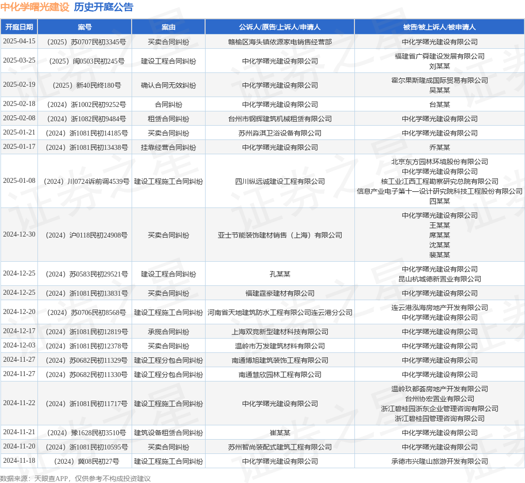 本站消息,根据天眼查APP显示,近日公布了一则中化学曙光建设有限公司作为原告/上诉人的开庭公告,详细内容如下: